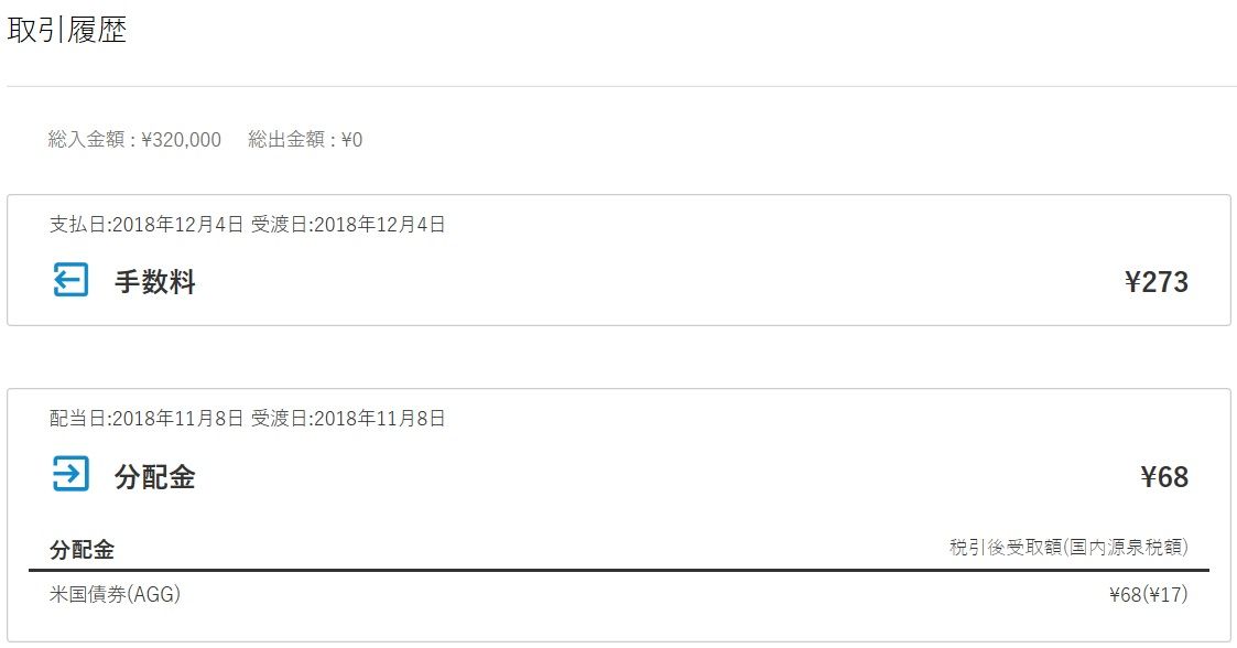 毎月分配の 米国債券(AGG) から分配金入金と、