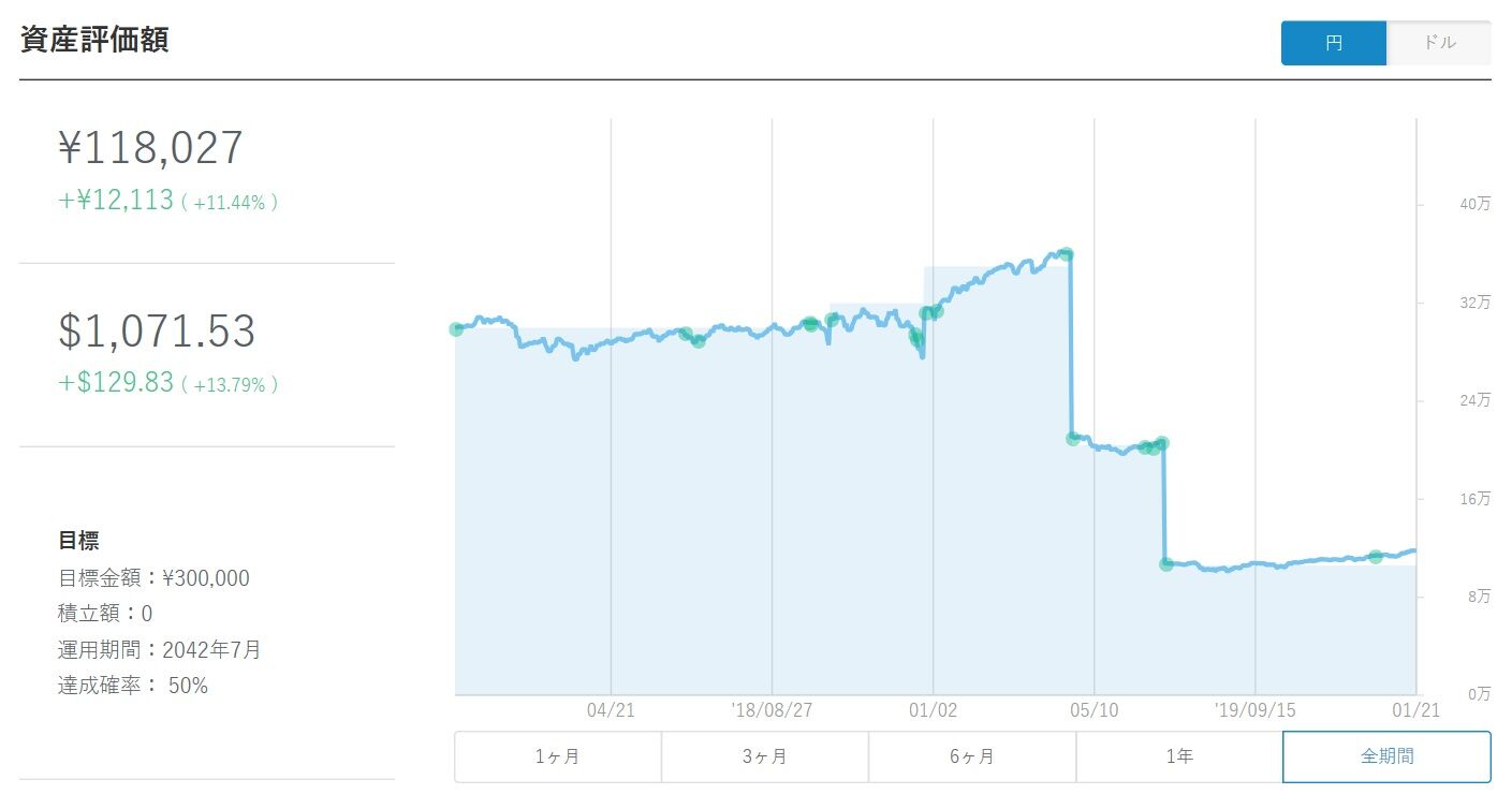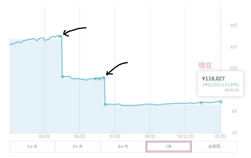 これからウェルスナビを始めようかとこの記事を読んでいるお方、10万円預ければ1年後には11万円になるよっていうことではありませんのでね… 紆余曲折があっての今です。