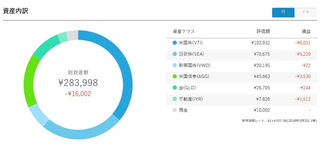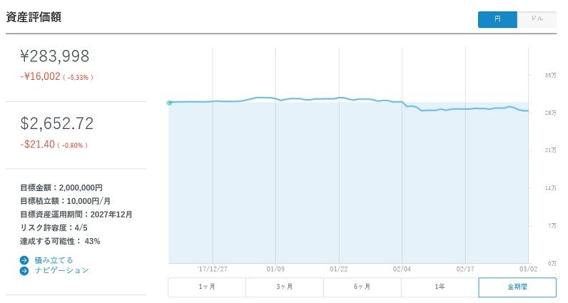 月初となりましたので、ロボアドの運用経過を確認してみようと思います。