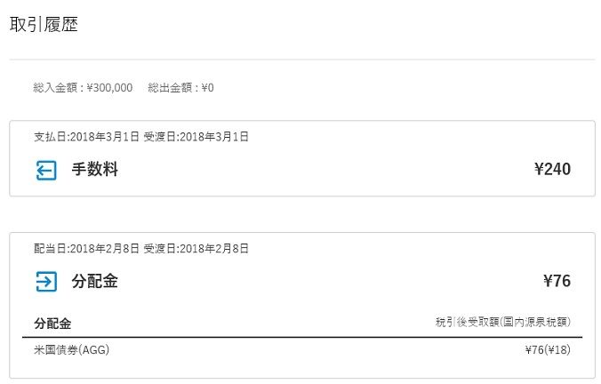 前回、「毎月分配されるはずのAGGの分配が無いな~」なんて書きましたが、2/8に¥76分配されていました。